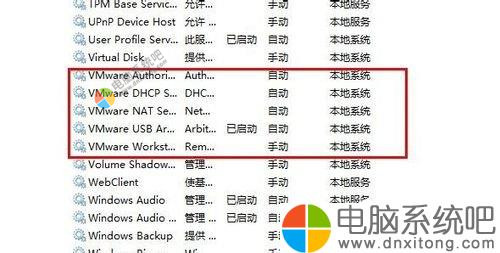 2、在服务管理中,找到VM开头的所有服务类别如下图。