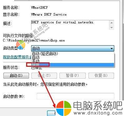 3、将所有VM开头的服务禁用掉,点击【确定】。如下图。