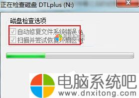 点击后会弹出“磁盘检查选项”,将“自动修改文件电脑系统错误”和“扫描并尝试恢复坏扇区”前面的复选框都勾选起来,然后点击“开始”: