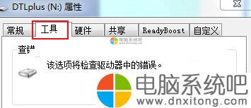 在文件夹所属磁盘上点击鼠标右键,然后在这个磁盘(U盘)的属性选项卡中,找到“工具”选项卡,然后点击“查错”选择夹中的“开始检查”按钮: