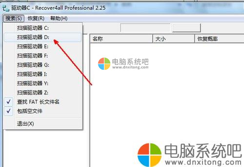 2、搜索你想恢复的磁盘,就是你所删除的文件曾经在哪个驱动器内,就选择这个磁盘的盘符。如果你在D盘中误删除了文件,就点击D盘,点击之后开始搜索所有在D盘中曾经删除的文件。
