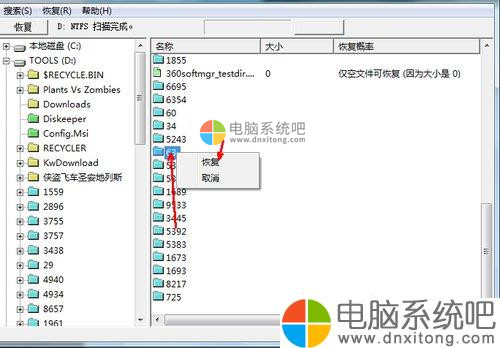 5、你果你想恢复某文件,就仔细查找,找到这个文件之后,在文件上面点击鼠标右键,然后选择恢复选项就可以了。