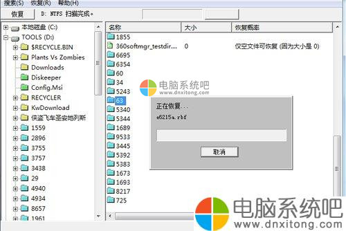 7、确定了保存路径之后,软件即开始恢复这些你选定的文件。如果需要恢复的文件过多,那么这也是一个十分耗费时间的过程,需要耐心等待恢复完成。