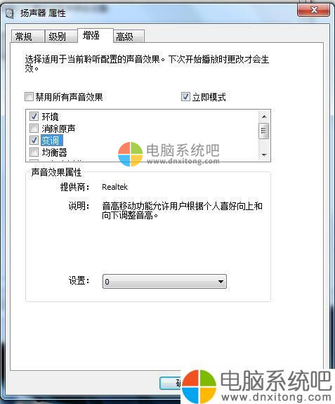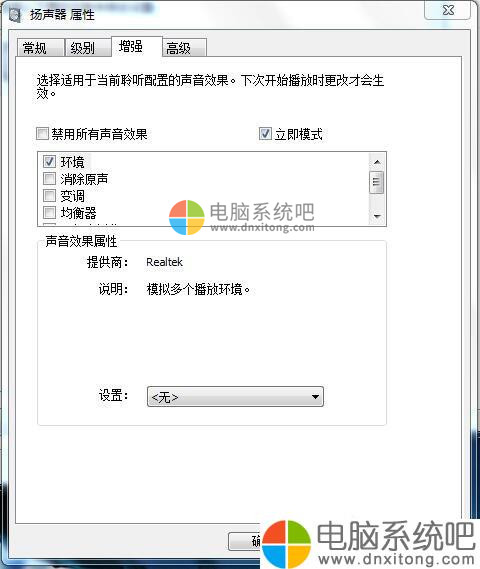 7、然后我们再点击一下扬声器属性页中的增强选项卡,如图所示。