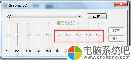 9、这里会出现一个电脑系统自带的均衡器,其中最右边有一些小的滑块,你可以适当地调整一下它们,我自己试验过,可以非常有效地提高电脑系统的音量,音量提升得非常明显,但是音质 也会相应地有所降低,但是为了高音量,牺牲一些音质也是值得的。