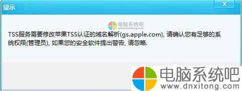 6、点击开启TSS服务时,会弹出修改host文件的确认对话框,点确定即可。如果是win7电脑系统必须使用管理员身份运行该程序。
