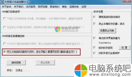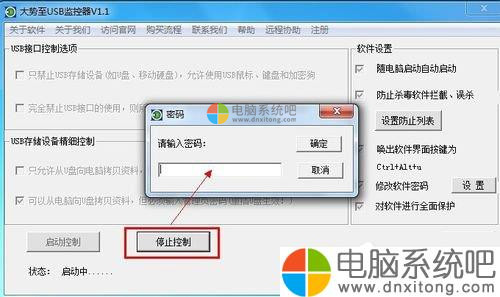 7.在此期间,就算有人试图想停止该软件的监控功能,却不知,是要输入正常的密码才行,因此,对U盘实施了很好的监控功能。
