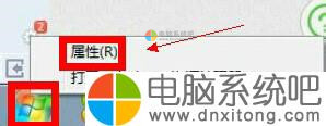 1、默认情况下,w7电脑下是没有运行选项的,但是我们可以将它调出来。将鼠标移动到开始菜单下右键选择‘属性“。