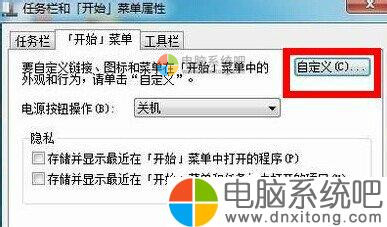 3、在窗口中,我们点击”开始菜单“选项,并选择”自定义“。