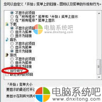 4、最后,在打开来的窗口中找到”运行命令”选项,在它前面的框框上打上√即可。