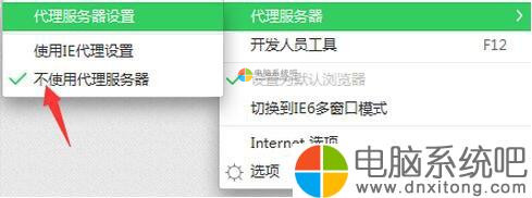 2、然后在弹出的代理服务器选项中,选择不使用代理的选项在前面打勾,然后重启浏览器即可。