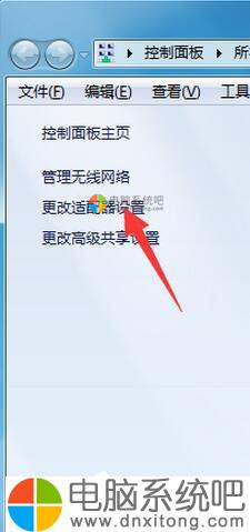 1、右键点击电脑桌面的网络图标选择属性,然后在属性界面打开网络适配器。