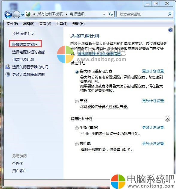 2、左边一列中,有“唤醒时需要密码”链接,点击它。