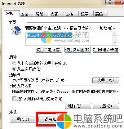 2、找到“Internet选项”下面的语言,打开运营设置选项卡,