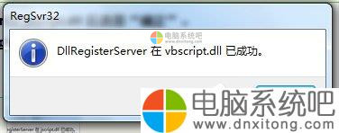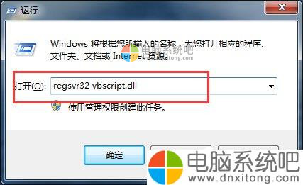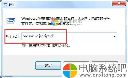 2、输入regsvr32 jscript.dll 后选择“确定”。再次输入regsvr32 vbscript.dll 选择“确定”。