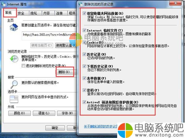 再点Internet删除文件(记得勾上删除所有脱机内容),确定