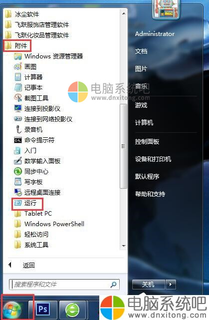 1、点击“开始”菜单,打开“运行”。