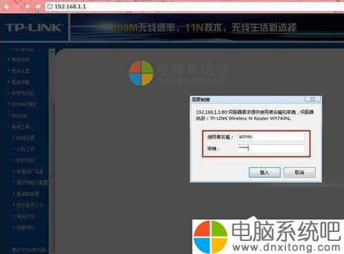 2、在浏览器地址栏输入192.168.1.1,然后点回车!这时候会跳出一个对话框,提示起输入用户名和密码,我们就输入:admin 然后点击登入!