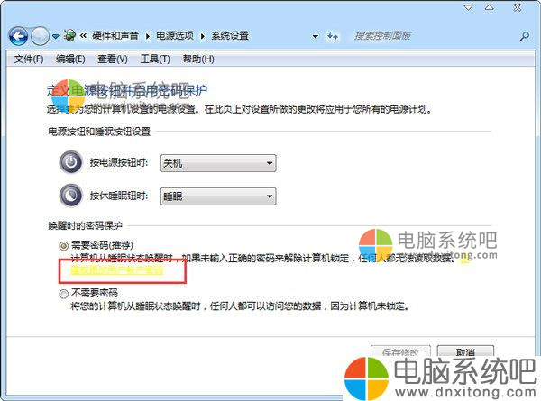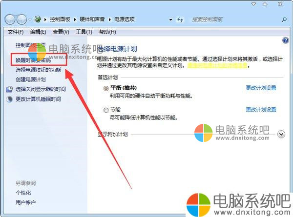 5、在打开的窗口中点击”唤醒时需要密码“选项。