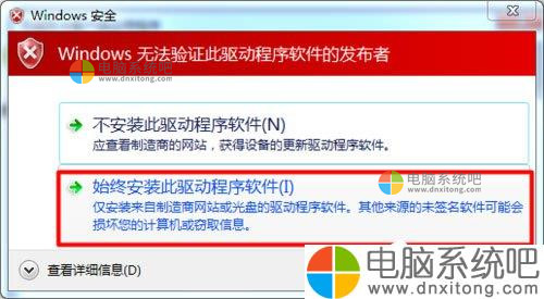 8.当Windows弹出“无法验证的驱动程序”窗口时,点击“始终安装驱动程序”项即可。接下来就等待无线网卡驱动程序的安装完成。