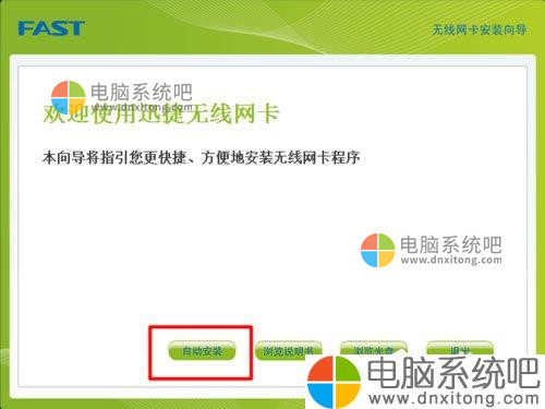6.在打开的无线网卡驱动程序安装界面中,点击“自动安装”按钮开始驱动程序的安装。