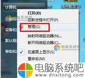 9.网卡驱动程序安装完成后,右击“计算机”,从弹出的菜单中选择“管理”项进入。