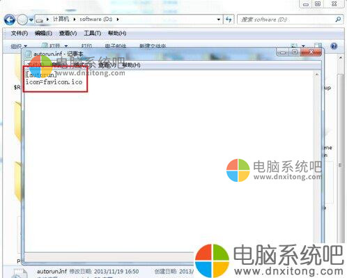 2、下面首先来修改D盘的的磁盘盘符图标,打开D盘并保持在D盘根目录中,首先准备好一些.ico格式的图片,将要修改为磁盘图标的图片命名为favicon.ico。