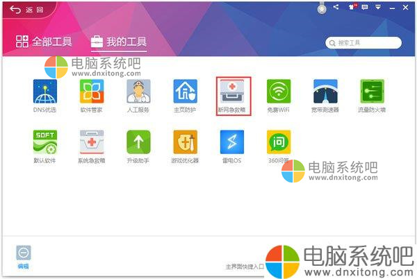 1.打开你的360安全卫士,在右下角有一个【更多】,在更多中有一个【断网急救箱】,点击【断网急救箱】。