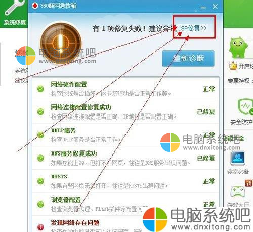 5.如果有修复失败的,你可以尝试着进行LSP修复,恢复你的网络连接。