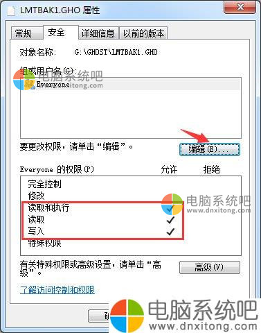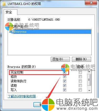 2.点击编辑按钮,然后勾选Everyone权限的“完全控制”,再点击确定。