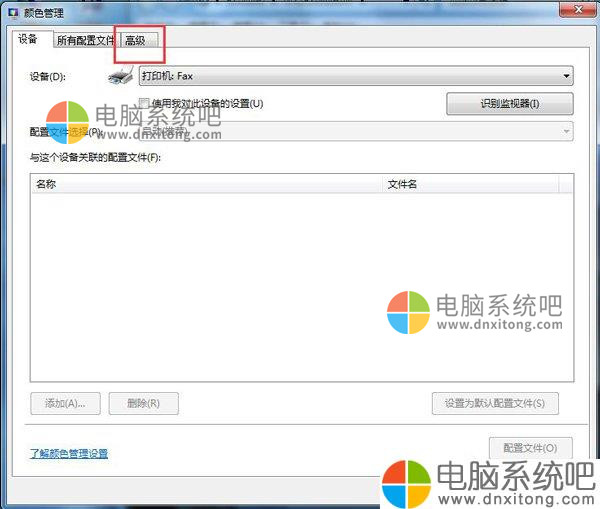 2、打开颜色管理之后,切换到高级标签页面。如图所示。