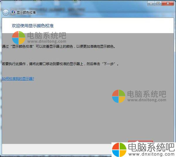 4、接下来出现了一个显示颜色校准的界面。提供了相关介绍信息,看完之后,点击下一步开始校准。