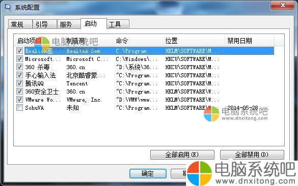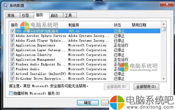 2、在“开始”—-“运行”中输入:msconfig,然后在打开的“电脑系统配置”对话框的“服务”和“启动”选项中关闭一些不需要开机就启动的程序软件或者后台服务项目。