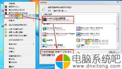 2、这种方法就比较简单了,右键文件选择打开方式,然后在打开窗口中选择你要使用的打开程序,然后勾选“始终使用选择的程序打开这种文件”确定后就可以打开了,以后就会自动关联了。