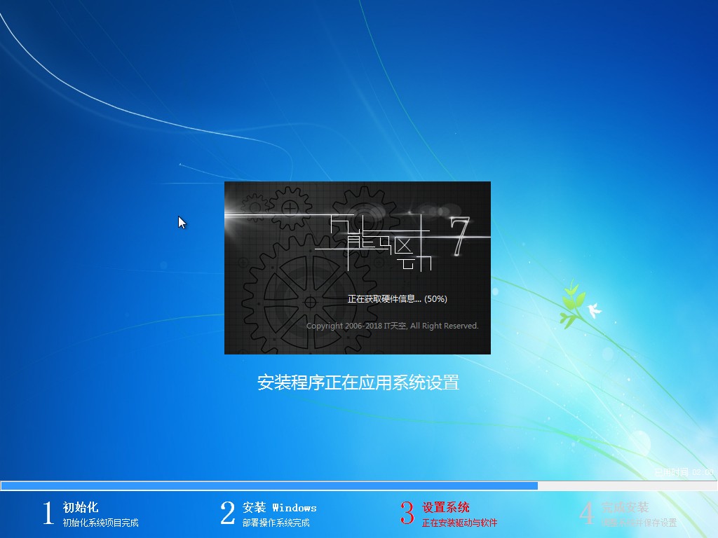 特别说明:如果是优盘PE安装系统,安装结束后选择重启,重启出现启动画面后一定要拔掉U盘,不然会出现盘符错乱。