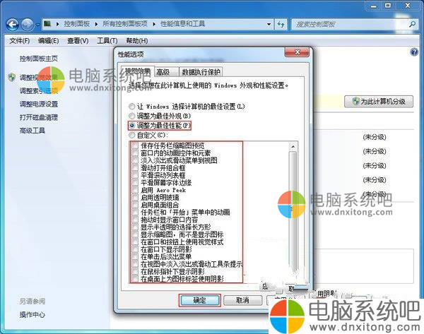 5、用户将其选为“调整为最佳性能”单击“确定”电脑系统将会切换成类似于WindowsXP电脑系统中的经典样式,在Windows7电脑系统中也是一样。