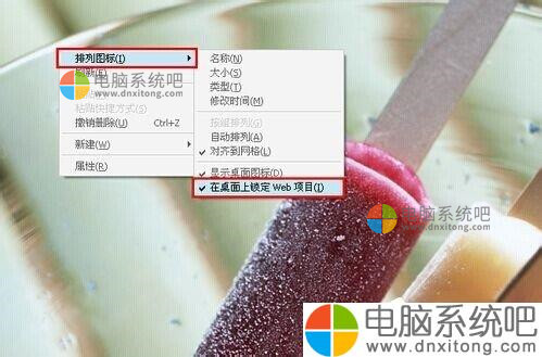 1、回到桌面,在空白处右键点击,出现下拉菜单,将光标移到“排列图标”,出现二级下拉菜单,将“在桌面上锁定Web项目”前的勾去掉。如果没有继续。