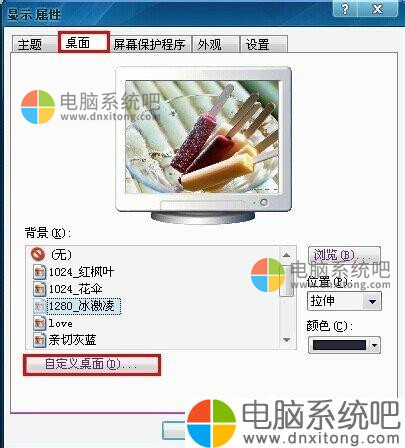 5、还是电脑桌面右键单击选择属性,这时弹出显示属性面板,我们选择“桌面”一栏。