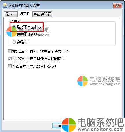 4、切换到语言栏中,选择:悬浮于桌面上,如下图所示: