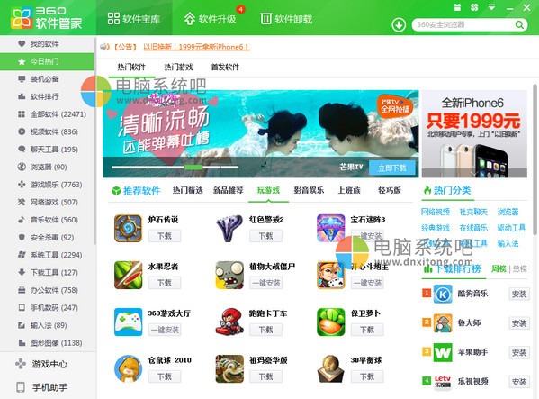 360软件管家可将当前电脑的软件升级到新版本。新版具有一键安装功能,用户设定目录后可自动安装,适合多个软件无人值守安装。