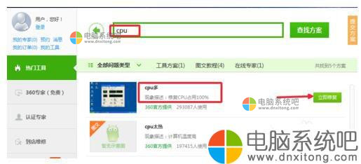 7、然后输入CPU搜索,找到CPU占用多,点击修复,当然这里只能试试。其实平时大家使用电脑的时候还是要养成良好习惯,希望你处理问题成功。
