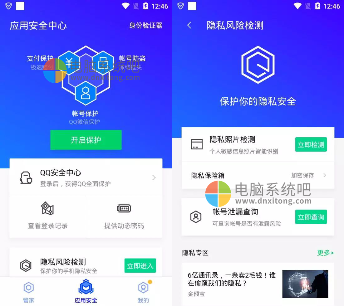 并且,它会提醒你哪些平台帐号,存在密码泄露风险。大家打开腾讯手机管家,点击底部栏的应用安全-隐私风险检测-贴泄漏查询,就能看到功能入口。目前,它只支持手机号查询。如果你想用邮箱号查询,可以通过上面火狐推出的Firefox Monitor。