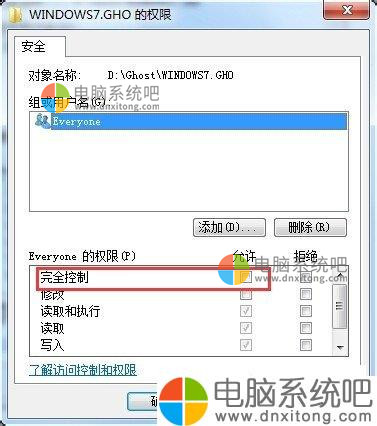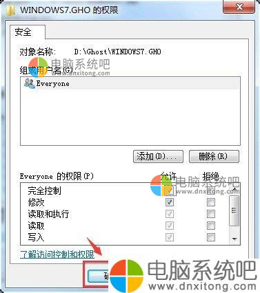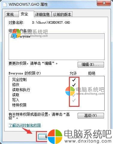 5、在“完全控制”后面,点击并带上“√”,“确定”继续。