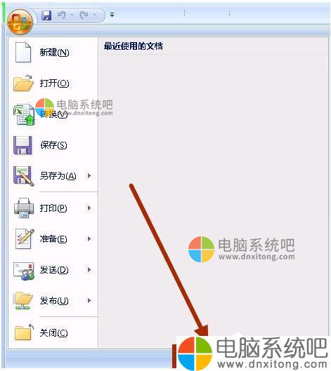 1、启动Excel,点击左上角的OFFICE 图标,选“打开”。