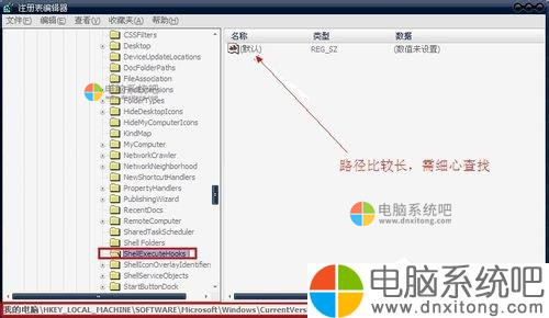 进入到注册表编辑器之后,在HKEY_LOCAL_MACHINESOFTWAREMicrosoftWindowsCurrentVersionExplorerShellExecuteHooks 下,