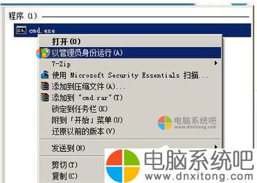 第四步:在开始菜单搜索“cmd” 在“cmd”上右键以管理员身份运行,在弹出确认的窗口里点“是”