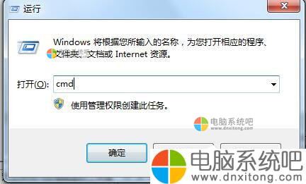1、开始→运行→输入cmd→回车。