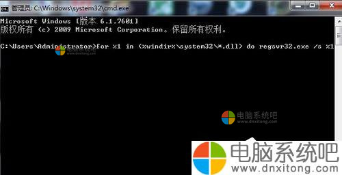 for %1 in (%windir%\system32\*.dll) do regsvr32.exe /s %1。