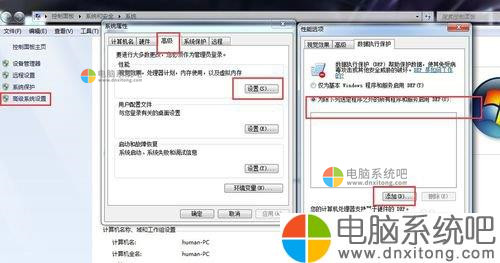 选中【计算机】–鼠标右键–【属性】–【高级电脑系统设置】–【高级】–【设置】–【数据执行保护】–添加报错的软件。