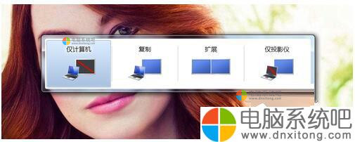 3、然后,我们就打开了相关的设置选项。需要我们注意的是,我们可以使用快捷键进行操作,按下微软徽标键以及P键,即可快速开启投影仪显示的有关设置。